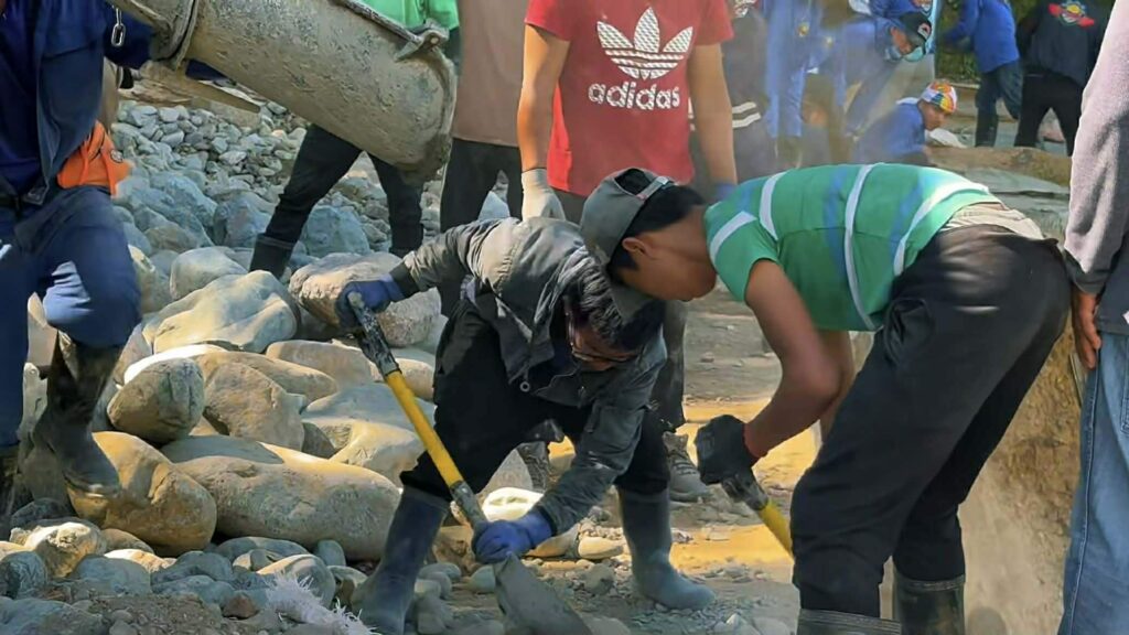 Nagkaisa ang mga minero, residente, at volunteers upang ayusin ang kalsada.